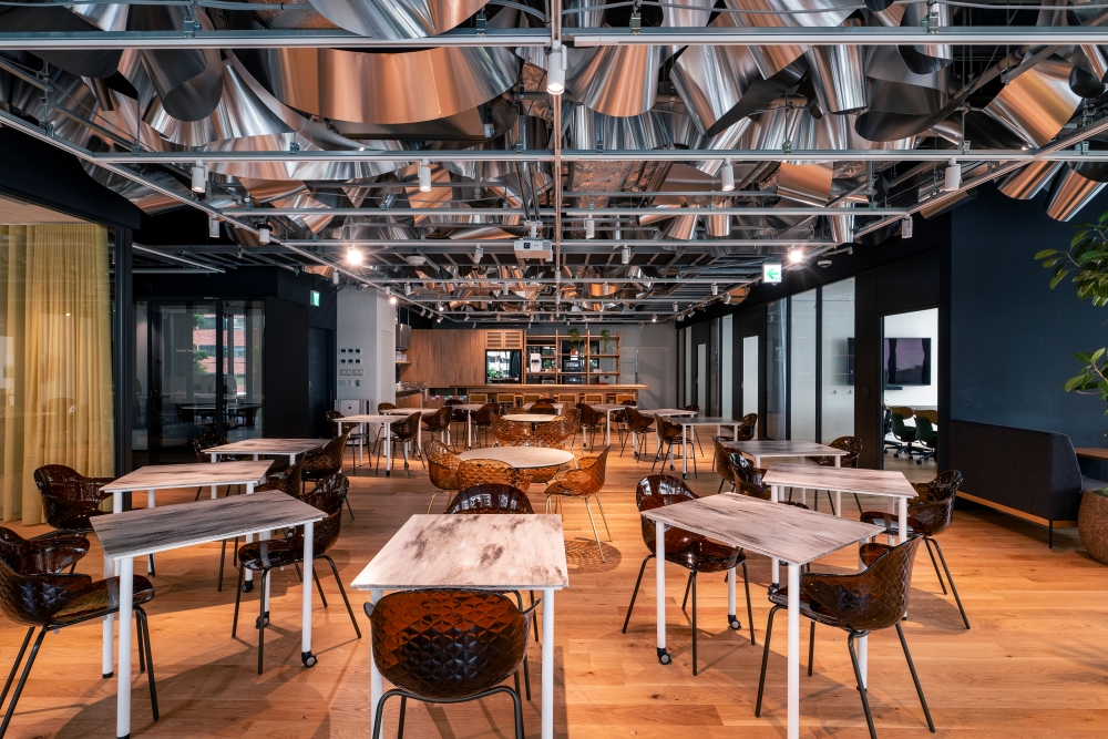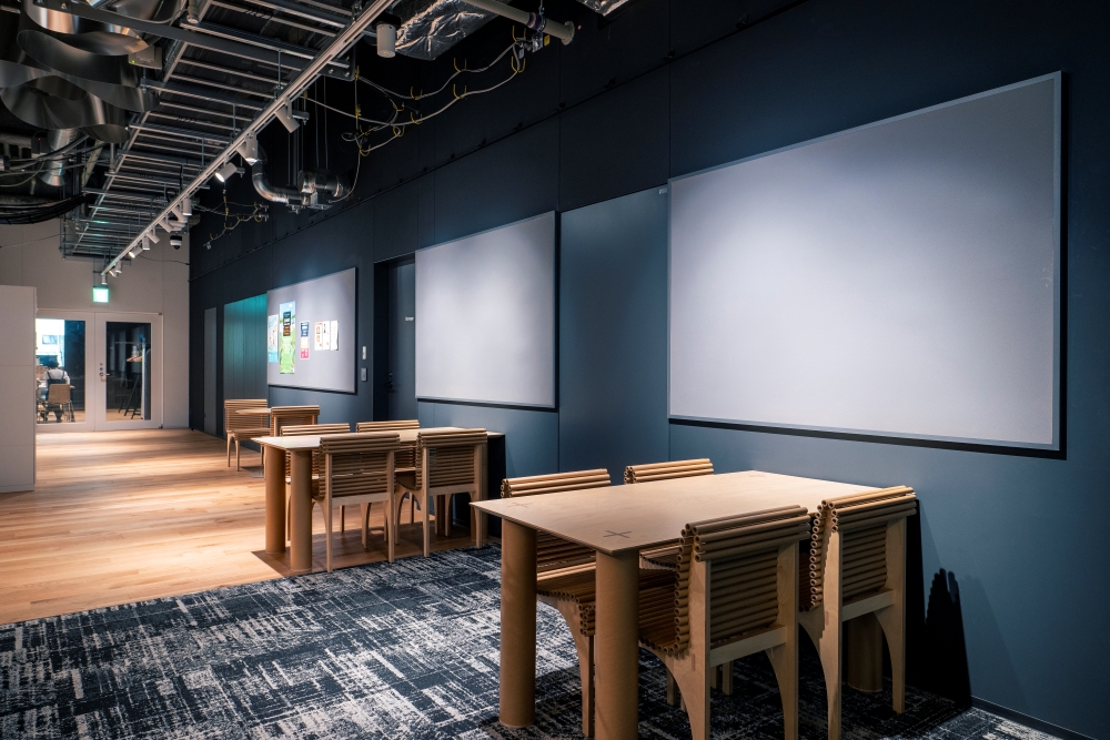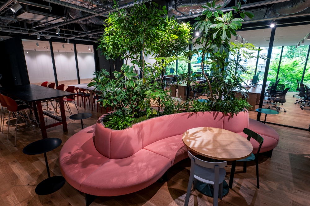 五反田JPビルディングの事業コンセプトである「次世代のNEXT CREATIONの場」であることを踏まえ、SDGsの理念に基づいたサスティナブルなインテリアデザインであることや、リサイクル素材の家具を選定する等、エシカル(倫理的)なデザインを考える場でもありたいと思います。