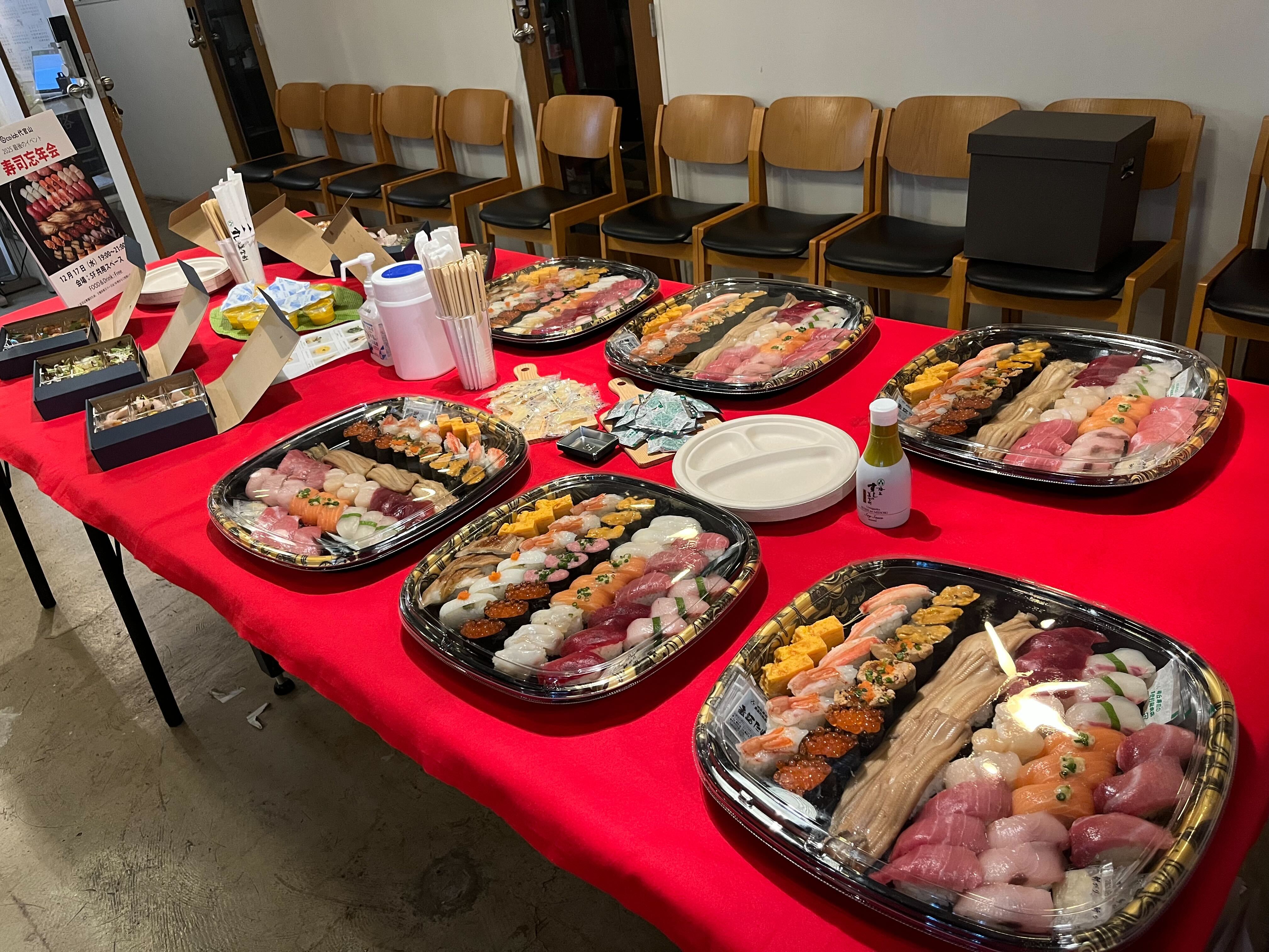 そしてメンバー感謝の気持ちを込めて、お寿司とシャンパンをご用意!